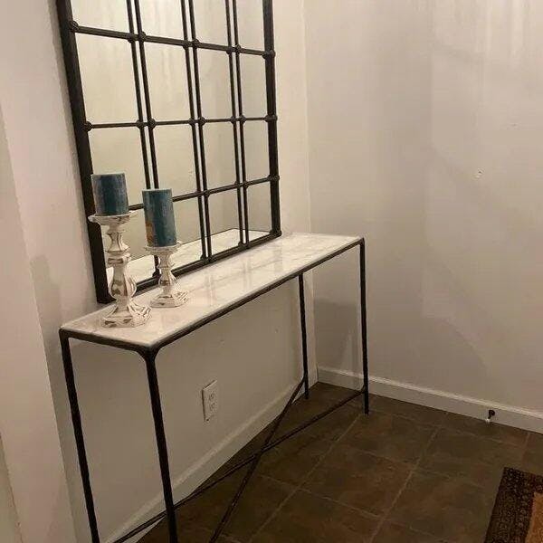 Our collection by the rustic sensibility of hand-forged metal with cool Italian Carrara marble. Employing an ancient fabrication process, artisans hand hammer the metal bars to reveal an alive, imperfect and organic texture. A layer of lacquer has been added to the surface of the stone tabletop for protection.