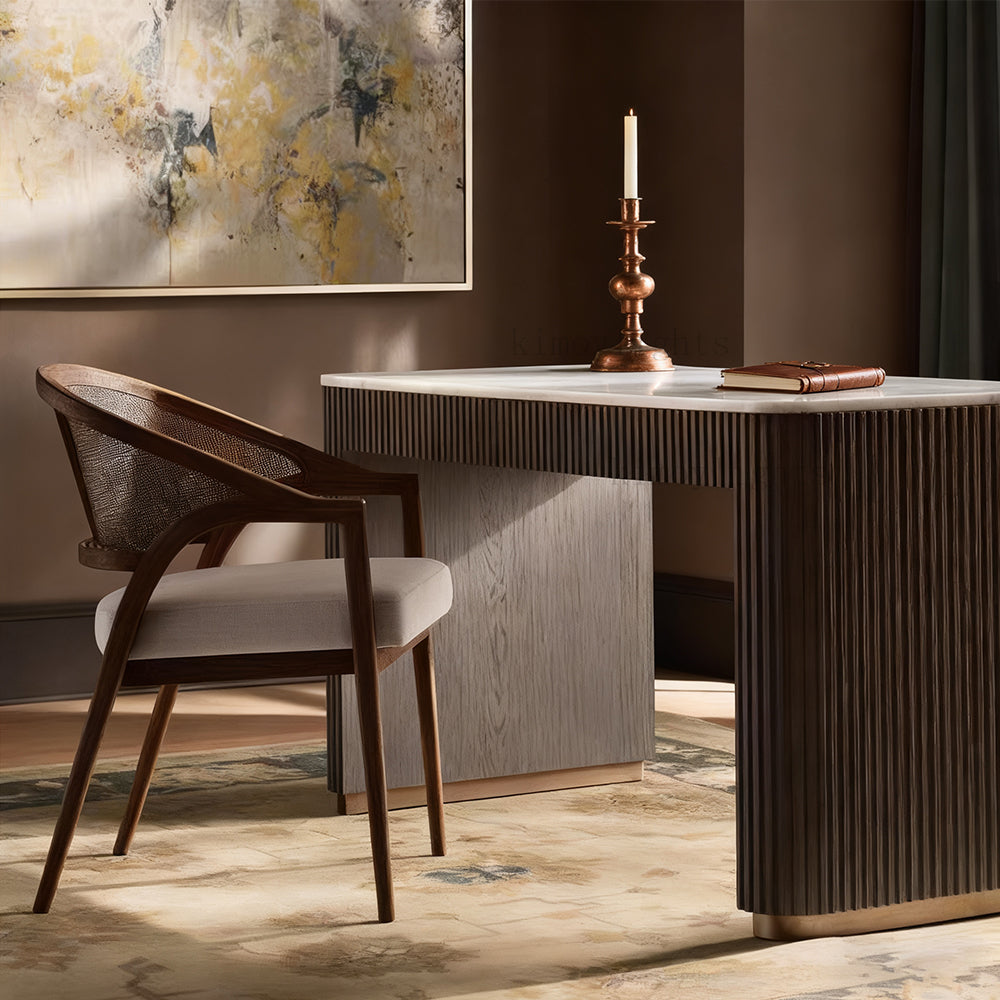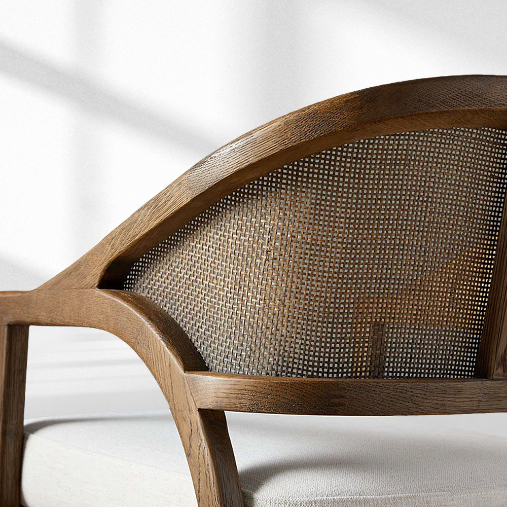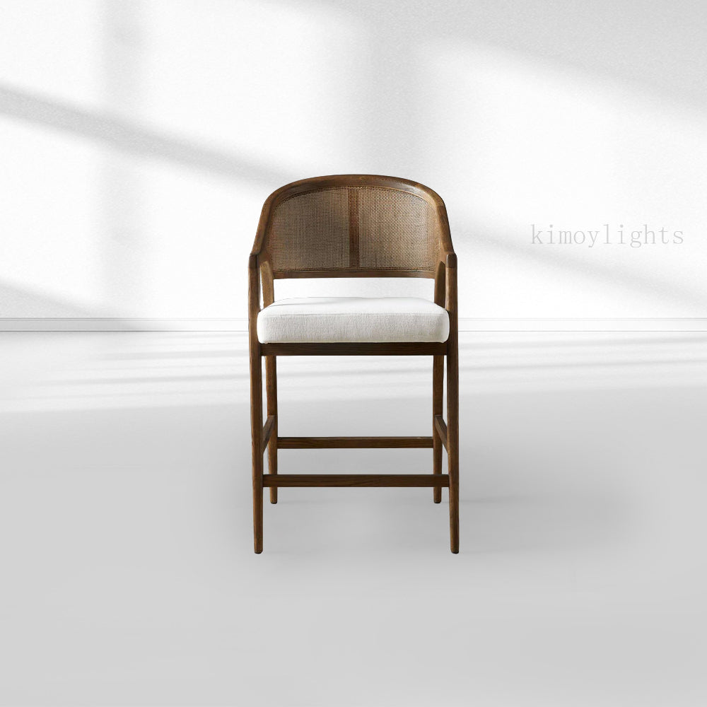 The AimRegal - series bar stool features a sleek black wood frame, woven cane back, and plush fabric seat, merging modern elegance with regal charm. It’s a perfect choice for luxury American kitchens or home bars, offering a design that balances sophisticated aesthetics and cozy comfort, ideal for elevating high-end interiors.