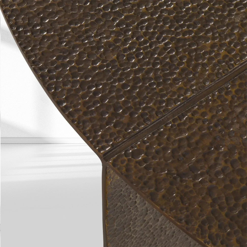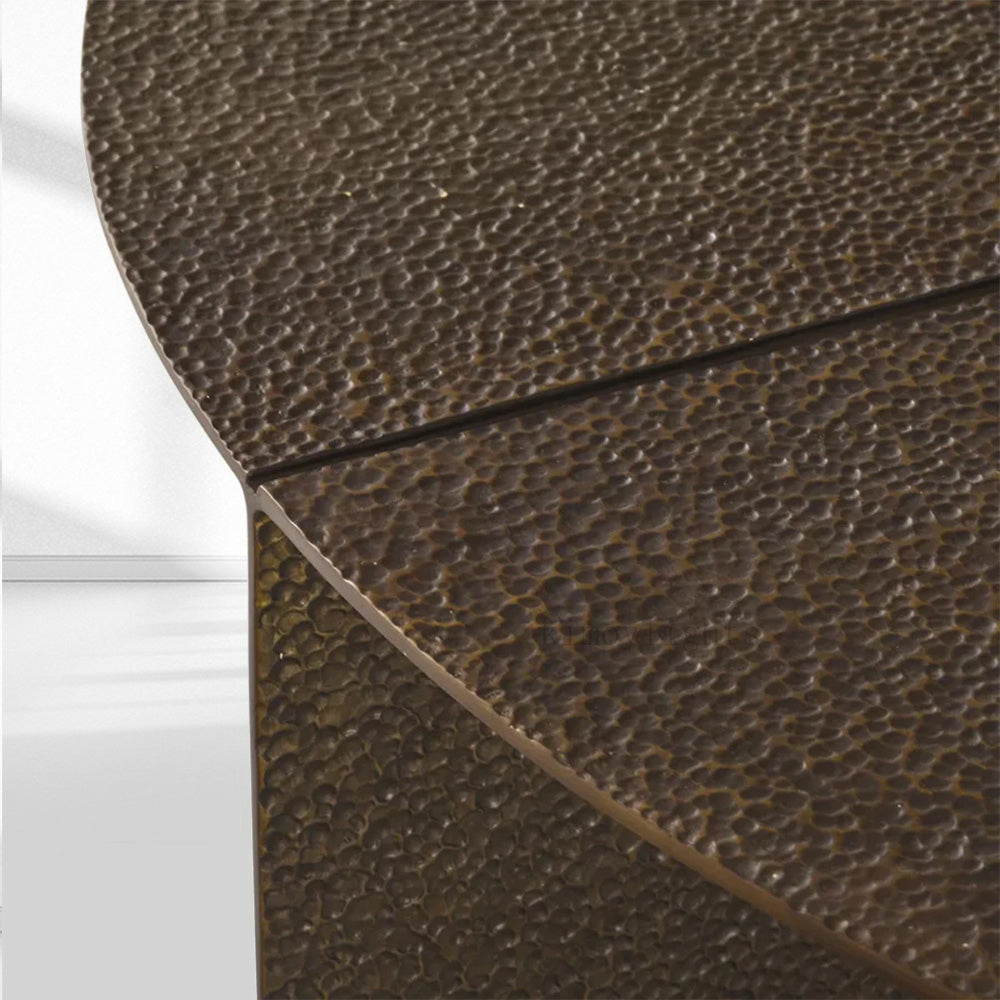 The Bowie - series coffee table features a hand-hammered metal construction with a rich, textured finish, blending artisanal craftsmanship and modern luxury. It’s an ideal statement piece for upscale American living rooms, offering a unique, sculptural design that showcases the beauty of handcrafted metalwork, perfect for elevating high-end interiors.