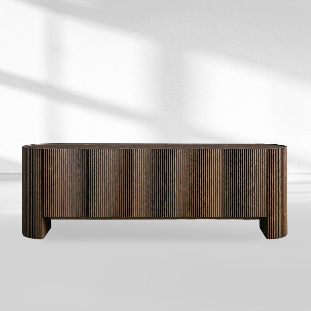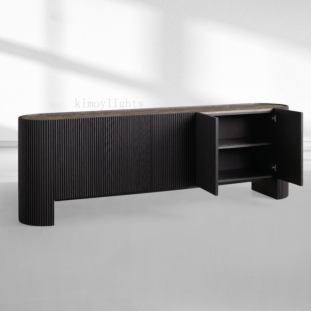 The FloRegal - series sideboard features a textured wood base (available in multiple tones) paired with a marble top, blending modern design and regal sophistication. It’s a perfect choice for luxury American dining rooms or living spaces, offering stylish storage with a refined, statement - making look.