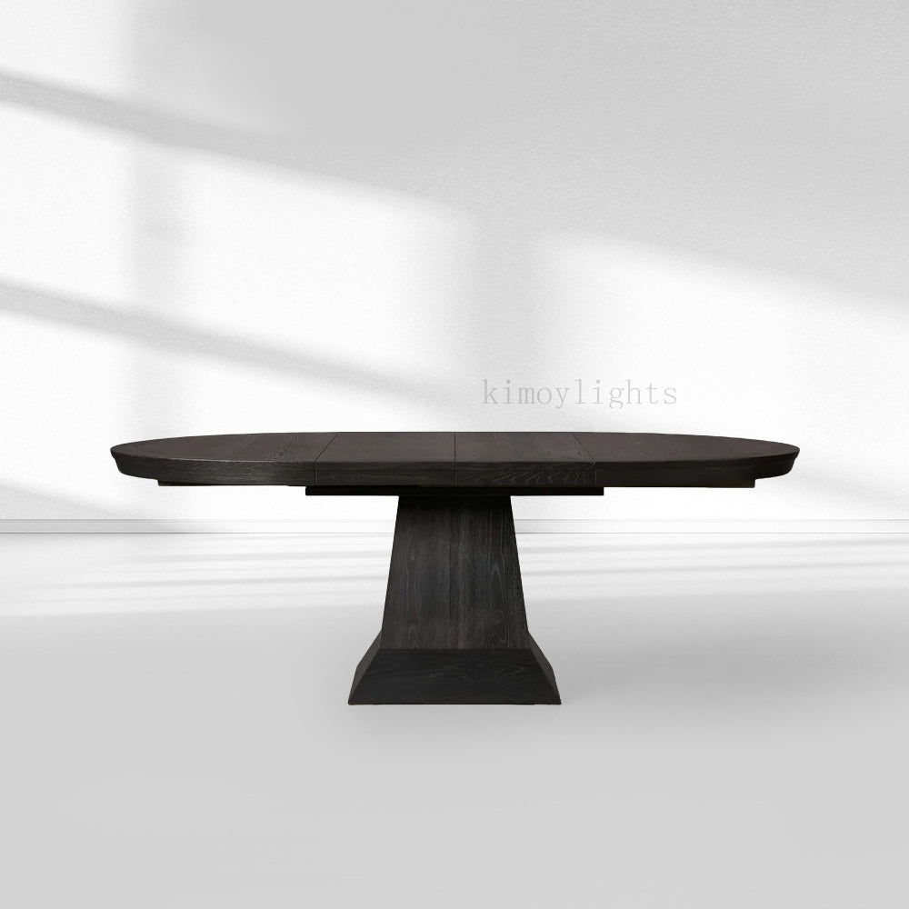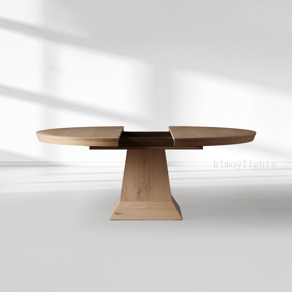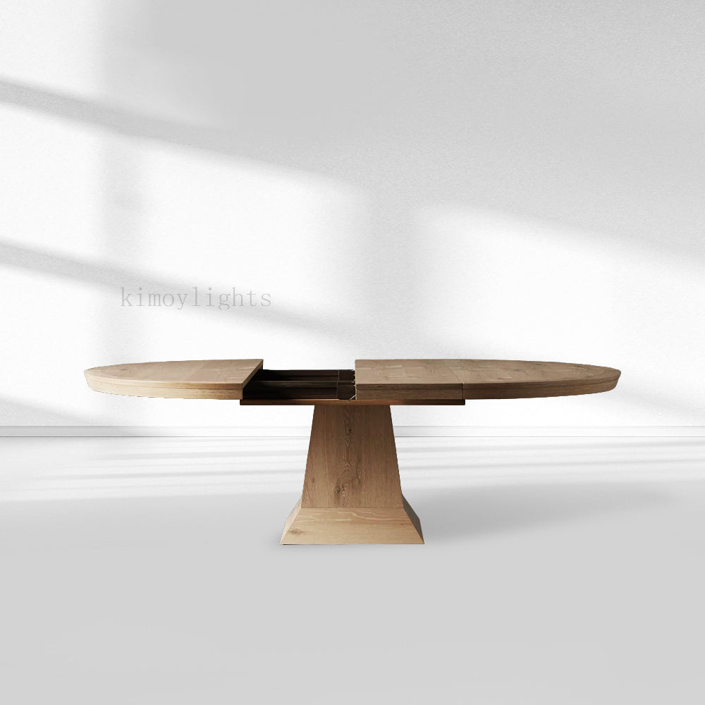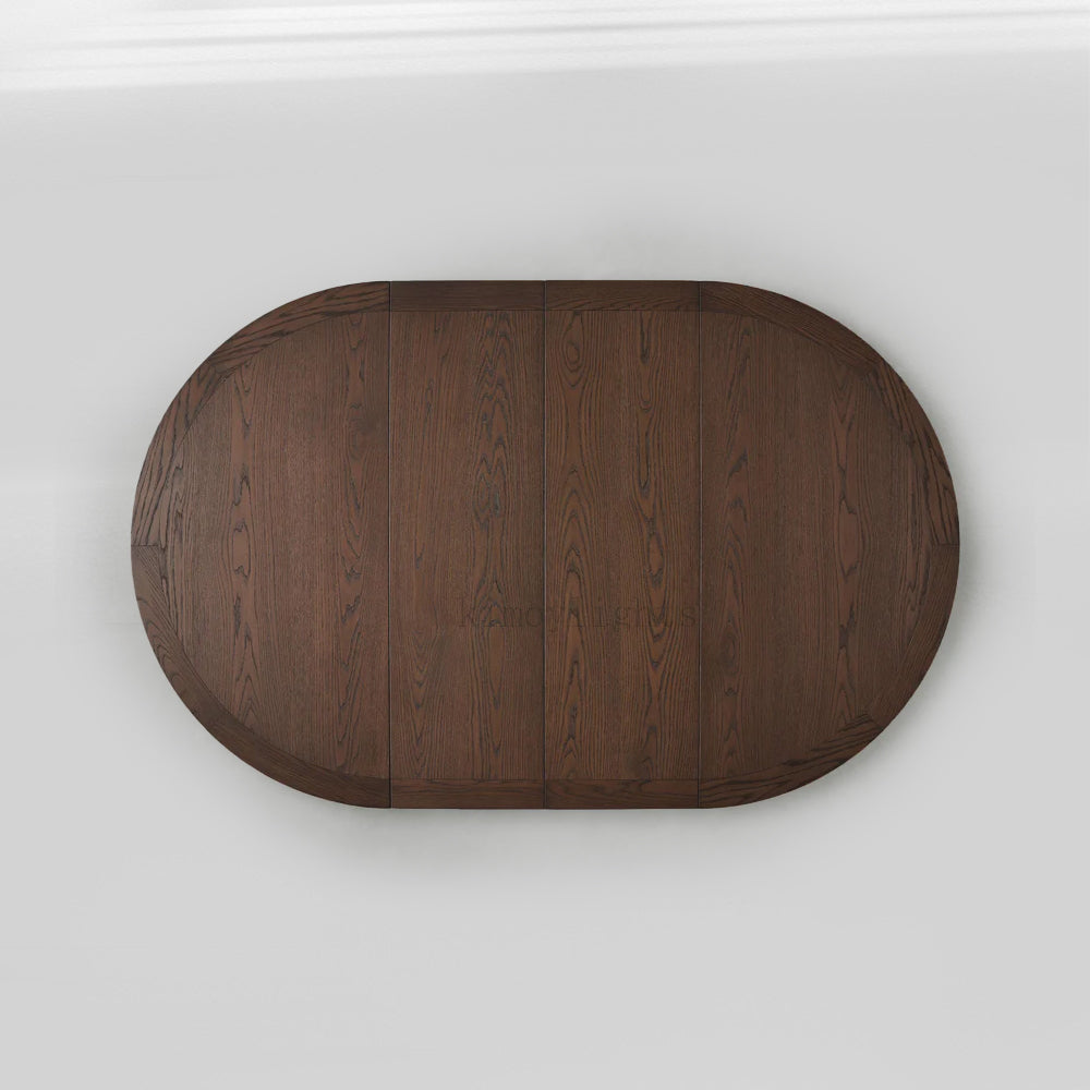 The Leighton - series dining table features a solid wood construction with an extendable oval top and a sculptural pedestal base, blending timeless craftsmanship and modern functionality. Available in multiple wood finishes, it’s an ideal centerpiece for upscale American dining rooms, offering a design that balances natural wood beauty and flexible seating capacity, perfect for elevating high-end interiors.