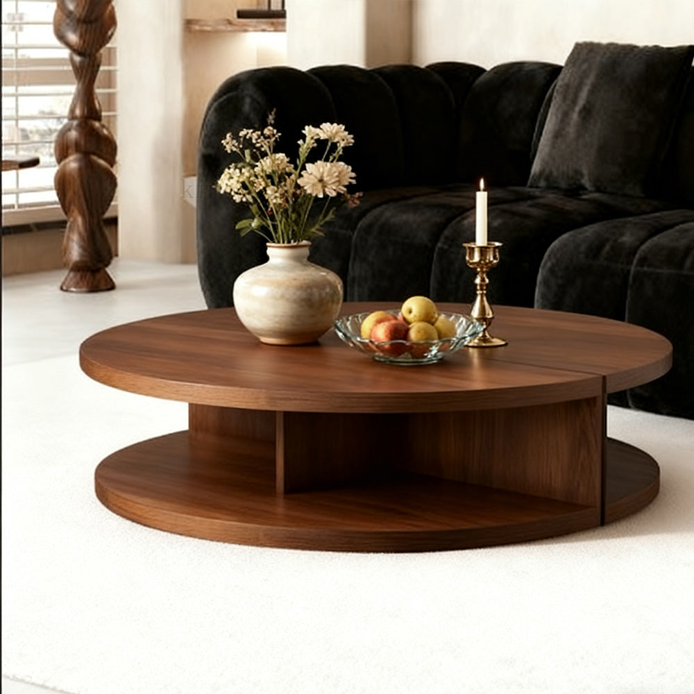 The Mihaela - series coffee table features a solid wood construction with a sleek oval design and an open lower shelf, blending modern minimalism and functional elegance. It’s an ideal centerpiece for upscale American living rooms, offering a design that balances clean aesthetics and practical storage, perfect for elevating high-end interiors with its understated, luxurious charm.