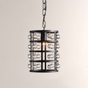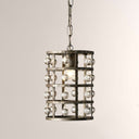 - Iron cage frame features an antiqued metallic finish complemented by Italian crystal spheres.