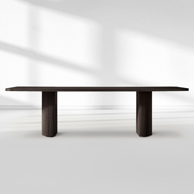 The bold shapes of our collection recall the proportions and fluid curves of postmodernism, while vertical reeding lends a classical counterpoint. The geometric frames, crafted of American white oak, appear to float on recessed plinth bases, casting a crisp shadow line.