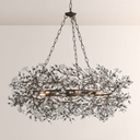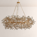 The Fiorek chandelier features an intricate branch silhouette adorned with sparkling crystals, merging nature-inspired elegance and opulent luxury. Its glowing, layered light adds a romantic, upscale ambiance, making it a showstopping centerpiece for high-end American dining rooms, entryways, or living spaces—elevating interiors with timeless, glamorous charm.